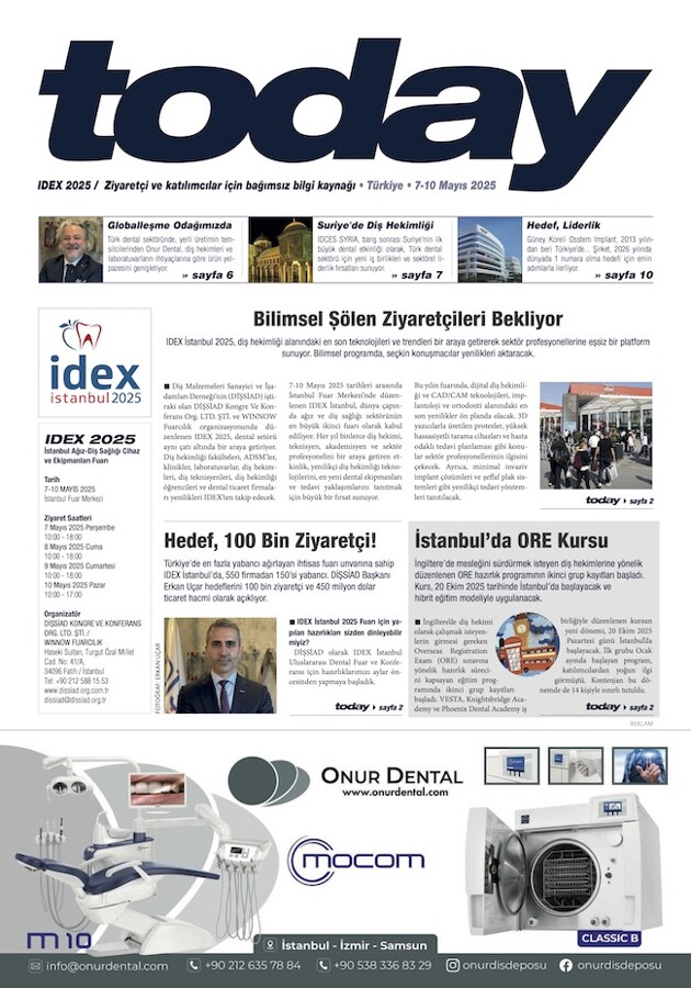 IDEX İstanbul – Uluslararası Dental Fuar ve Konferansı, 15-18 Nisan 2026 tarihinde İstanbul Fuar Merkezi’nde düzenlenecek.“Yeni Nesil Teknolojilerle Dijital Diş Hekimliği” temasıyla düzenlenen bilimsel programların yanı sıra etkinliğe dair aranan bilgiler, uluslararası fuar gazetesi Today’de olacak. Fuar rehberi niteliğindeki gazeteye son reklam teslim tarihi 3 Nisan. Sınırlı sayfaya ve reklam alanına sahip Today’de yerinizi ayırtmayı unutmayın.